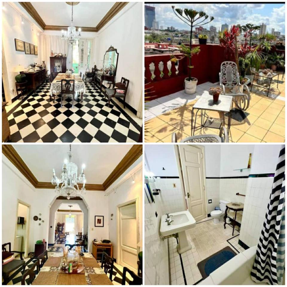 apto de lujo en el vedado cerca de paseo Tiene tres cuartos y medio con tres baños balcón terraza sala comedor cocina patio de servicio patio de lavado terraza arriba con una vista preciosa