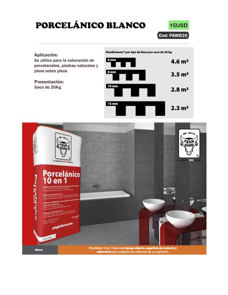 - Pegaduro PORCELÁNICO GRIS y BLANCO, bolsa de 20KG-15usd cada bolsa