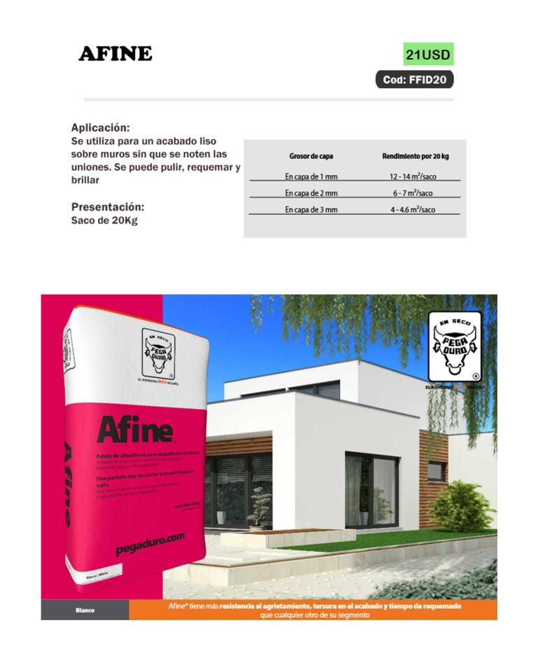 - Pegaduro AFINE (MASILLA para PARED INTERIOR-EXTERIOR), bolsa de 20KG-21usd cada bolsa