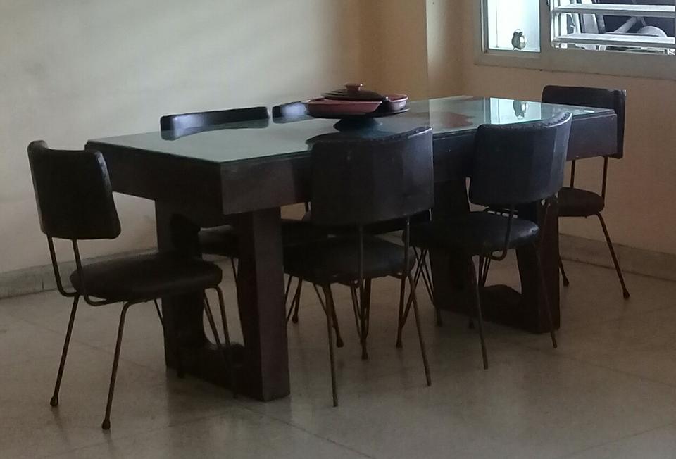 Se vende juego de comedor de caoba con cristal en la mesa. Para 6 comensales. Las sillas son de hierro y estan forradas en vinil. Precio negociable