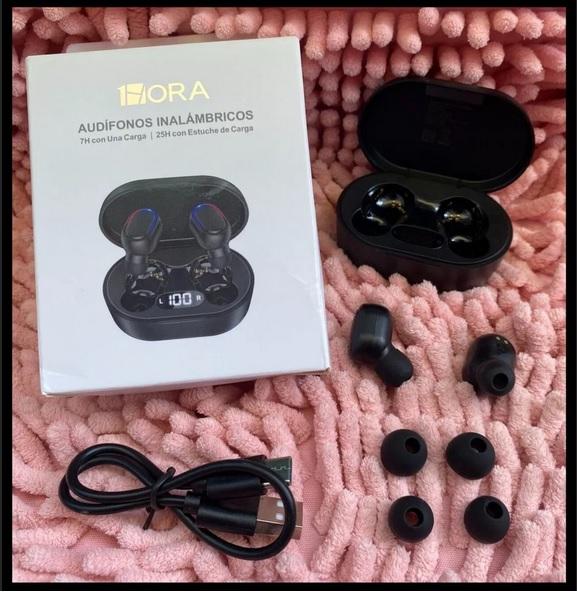 Audifonos Marca 1 hora Modelo AUT114, Bluetooth 5.3, Nuevos en caja! Con indicador de carga en estuche, hasta 7hrs de duración y hasta 25hrs con la caja.