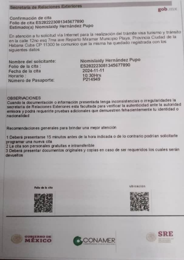 Citas para Mexico TURISMO